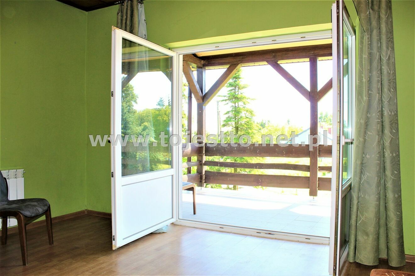 Uwaga: istnieje możliwość powiększenia areału agroturystyki, ponieważ z działką zabudowaną będącą przedmiotem oferty sprzedaży graniczą duże działki będące również na sprzedaż: (las powierzchnia 13345m2, grunty orne 24300m2). Można też skorzystać z istniejących zabudowań (stodoła) i przekształcić na przestrzeń z pokojami dla gości.