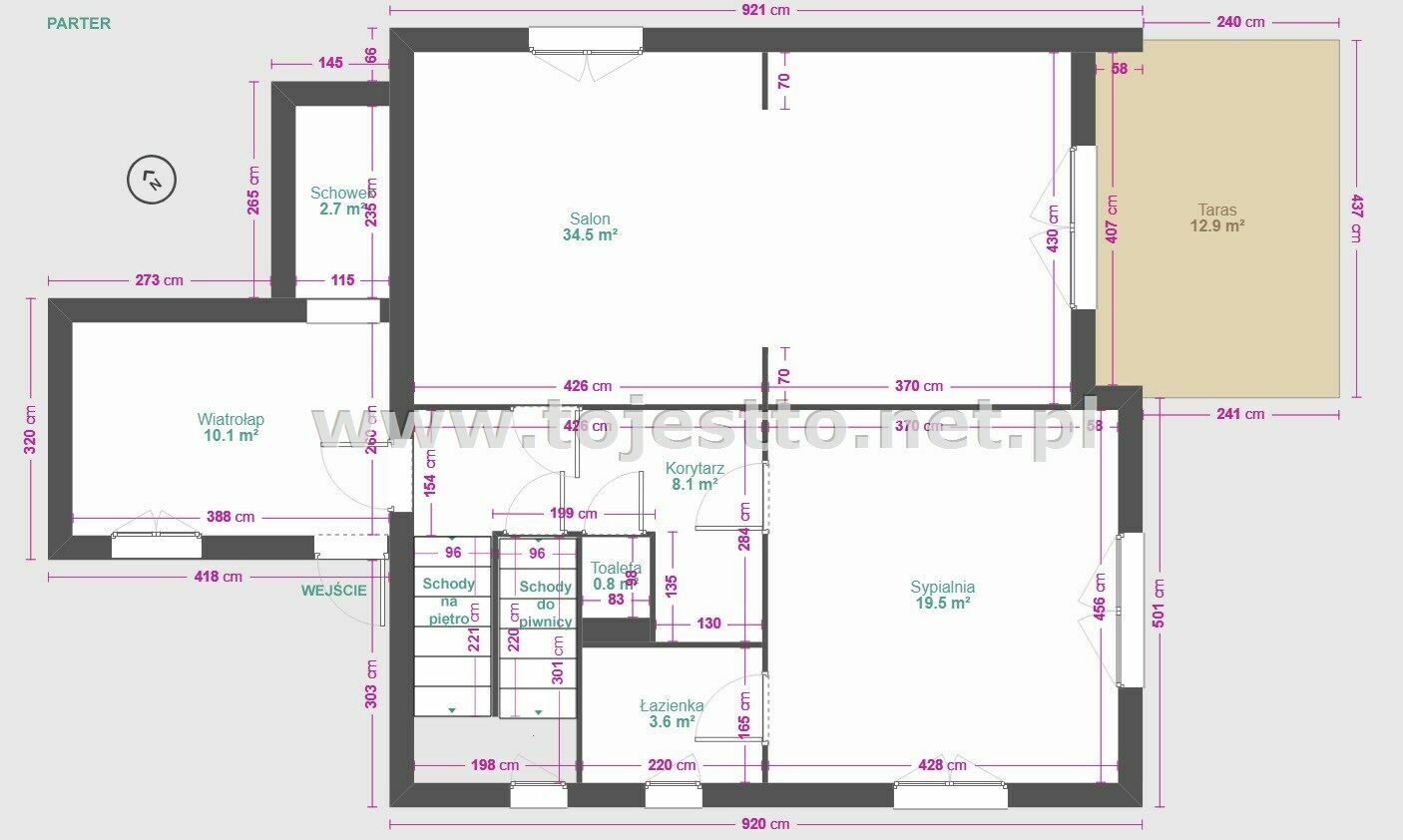 w podpiwniczeniu znajduje się wyposażona kuchnia, pokój, pomieszczenie gospodarcze, łazienka z toaletą, pomieszczenie techniczne,